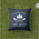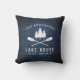 Beaux coussins de coussin extérieur à thème rustique, avec votre nom de famille et "Lake House" ou tout autre texte désiré ainsi que sa date et son emplacement établis. Ce design personnalisé et unique présente une silhouette blanche de barques croisées et de pins sur un imprimé de planches de bois aux couleurs bleues riches. Pour voir d'autres modèles comme celui-ci, n'hésitez pas à visiter ma boutique ici à "Zazzle.com/Rustic_Charm". Merci .