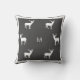 Rustic reindeer dark gray family monogram holiday Throw Pillow.