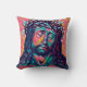 Sad Jesus Christ Face Thorn Crown Abstract colorful Christian religious art Throw Pillow