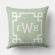 Coussin Sage moderne Vert clé grecque Monogramme personnal