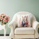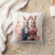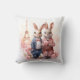 Beau coussin avec un couple d'aquarelles de lapins célébrant la Saint Valentin à Paris. Personnalisable .