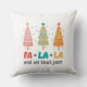 Montrez votre esprit de Noël avec cet oreiller amusant présentant une illustration tendance de style rétro de trois sapins de Noël ornés de décorations, une typographie colorée qui dit « FA LA LA », et une palette de couleurs rouge, verte et jaune. Gardez la phrase « Et tout le reste », ou ajoutez votre propre texte personnalisé pour capturer votre esprit de vacances unique.