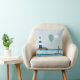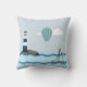 Jetez un coussin avec la scène nautique numérique d'un voilier naviguant dans un océan ondulé et une montgolfière flottant devant un phare rayé.