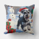 Coussin Schnauzer coule en neige avec le Casquette de Noël