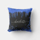 Couleur arrière - plan noire. Décoré avec des gouttes de parties scintillant bleu royal, la peinture goutte à goutte et les confettis. Personnalisez et ajoutez un nom, écrit avec un script de style à la main moderne avec des swashes. Pour que les swashes ne suppriment que le nom de l'échantillon, laissez les espaces ou émoticônes devant et après le nom.