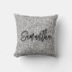 Créez votre propre fax luxueux gris argent parties scintillant carré jetez l'oreiller avec nom ou monogramme. Customisez le style et la taille de la calligraphie de police du script de pinceau noir. Déplacez, dupliquez ou supprimez le faux graphique scintillant.