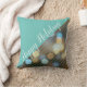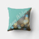 Noël Jetez un oreiller avec un script Happy vacances blanc tendance. La moitié de la coussin est bleue et l'autre moitié a une belle photo de bokeh de vacances et des rayures bleues. Grand coussin de Noël de Noël pour un sentiment festif de Noël ou un cadeau pour une famille et des amis. Vous pouvez customiser le texte ou l'effacer.