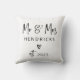 Ce coussin moderne et branché en noir et blanc présente votre nom de famille et votre cool, un script écrit à la main qui dit "M. & Mme", ainsi qu'un coeur griffé. Une tenue de mariage chic et élégante pour les jeunes mariés qui s'adapte parfaitement à tout décor !