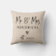 Ce coussin moderne et tendance aux couleurs neutres présente votre nom de famille et votre cool, un script en lettres de couleur noire qui dit "M. & Mme", ainsi qu'un coeur griffé. Une tenue de mariage chic et élégante pour les jeunes mariés qui s'adapte parfaitement à tout décor !