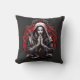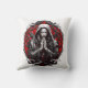 Blanc et noir sur les côtés face. L'image représente une figure qui combine des éléments de mysticisme et d'art gothique, avec un personnage central avec une expression sereine mais intense. La figure semble être une femme habillée d'une robe à capuchon. Sa peau est pâle, presque blanche, ce qui lui donne une apparence éthérée. Elle se fait serrer les mains dans un geste de prière, mettant l'accent sur un sentiment de contemplation ou de rituel. Le visage de la femme est très stylisé, avec une base blanche et des marques rouges. Un petit point rouge est présent sur son front, et d'autres lignes rouges sont sous ses yeux, ce qui ajoute à l'aura mystique.