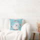 Sur ce joli coussin de Noël, un bel ours polaire se détache d'un poinsettia rouge et d'une couronne de branches de baies. L'image est placée sur un arrière - plan bleu. Le dos du coussin tient votre texte personnalisé dans cinq champs faciles à changer, avec une séparation intermédiaire d'un bouquet de vacances fleuri. Mignonne d'un grand-parent, d'un parent, d'une tante ou d'un oncle pour n'importe quel enfant.