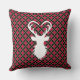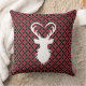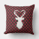 Silhouette de rennes sur oreiller à à damiers lancer noir et rouge. Les rayures noires ont une touche rustique.