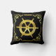 Coussin Silhouette de roue du navire marin/carré doré/noir