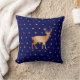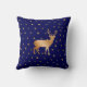 Coussin Silhouette et étoiles de rennes dorés sur bleu mar