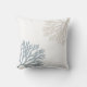 Cet oreiller de style côtier dispose de deux silhouettes de corail de mer, l'une en bleu côtier et l'autre en couleur sable. Sur le dos se trouvent deux silhouettes de corail de mer, l'une dans une teinte plus claire de bleu et l'autre dans une couleur bronzée.