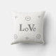 Silver Grey Love Texte et Étoiles sur Coussin blanc.