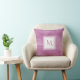 Un carré design en marbre simple et subtil lance l'oreiller dans le violet clair avec un badge carré blanc moderne que vous pouvez personnaliser en ajoutant votre monogrammed initial à. Cela fait partie de la collection de Monogrammes en marbre subtil de Crocus Spring.