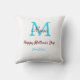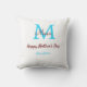 Coussin simple minimum jour mère bleu monogramme rose nom