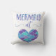 Sirène mignonne au carreau de coeur. Ce coussin a l'énonciation "sirène au coeur" écrit dans une belle police colorée dedans avec les aquarelles bleues, pourpres et vertes. Accomplissez le coeur bleu, pourpre et vert avec des échelles de sirène.