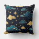 COUSSIN SKI DE NUIT AVEC NUAGES ET ÉTOILES BLEU & OR