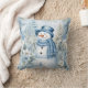 Coussin décorateur pour les vacances avec un mignon bonhomme de neige portant une écharpe bleue et un chapeau haut de gamme.
