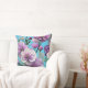 Coussin Soie rose pourpre bleu doux grandes fleurs