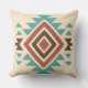 A Southwestern-style geometric pattern featuring layered diamond shapes in warm terracotta, deep brown, and cool turquoise tones. The distressed texture gives it a vintage feel, while the symmetrical layout adds a clean and modern touch.
