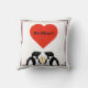 Ce design adorable présente mes deux pingouins en dapper, avec un champagne en verre. Au centre de la conception il y a un coeur rouge et un texte qui dit "Soyez mien !" Le long du bord du coussin, il y a une frontière à deux règles, rouge et noir.
