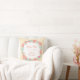 Partagez la joie de votre naissance avec ce coussin souvenir pour votre petite fille. Ce design présente un texte personnalisable pour le nom de votre bébé, la date de naissance, l'heure de naissance, le poids et la taille. L'oreiller est d'une couleur pêche pastel avec une jolie couronne florale aquarelle.