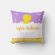 Ce coussin mignon et amusant présente un adorable canard jaune en bulles de bain savonneuses blanches sur un arrière - plan violet clair avec un ruban orange et des rayures jaunes. Le texte combine écriture manuscrite et polices sans serif pour un look élégant et moderne. Il peut être personnalisé avec les statistiques de naissance de votre bébé, comme le nom, la taille, la date et l'heure de naissance, ou si vous souhaitez le donner comme cadeau de douche vous pouvez modifier et supprimer du texte.