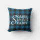 Unique, élégant et décoratif style chalet coussin avec mignon Cabine Sweet Cabine de texte de citation, sur un billard noir et bleu foncé Buffalo Lumberjack écossais design motif.