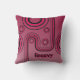 Rétro 1960 à 1980 coussin de conception avec texte modifiable ou amovible. Des rayures super, roses et noires, plongent les yeux dans l'excès de ce coussin design rétro, funky et futuriste. Le design des années 60 s'inspire des pin-ups et des films d'espionnage.