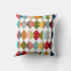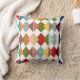 Cet oreiller de lancer a une conception Bauhaus de diamants qui se chevauchent dans des couleurs rétro.