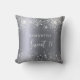 Un coussin pour une chambre de filles Sweet 16, 16e ans. Un arrière - plan faux argent avec de la poussière de parties scintillant fausse. Le texte : Sweet 16 est écrit en blanc avec un grand script de style à la main moderne. Personnalisez et ajoutez un nom.