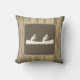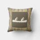Le thème rustique et aventure projette des oreillers avec le symbole du canot comme celui qui voit le long de l'autoroute ou le bord de la route. Silhouette blanche de deux personnes canoë sur brun, avec arrière - plan en bois vieilli
