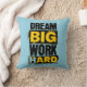 The design features massive, distressed black block typography for "DREAM" and "WORK," rendered with a rugged, industrial hatched texture. These words frame "BIG" and "HARD," which are presented in solid yellow lettering inside bold, weathered black boxes.