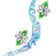 Fleurs de Tiaré avec motifs polynésiens "marquisiens". Ils symbolisent l'océan, la terre, le ciel, la puissance, la vision et les ancêtres.