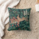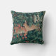 Un coussin de tapisserie vintage avec une image de lapins dans une forêt.