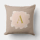Feminine minimalist design in warm taupe with a soft blush watercolor accent and centered gold monogram. The balanced neutral palette adds quiet polish to beds, reading chairs, or layered seating, making it ideal for refined everyday home styling.