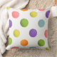 Une décoration coussin de tennis colorée et créative avec des balles de tennis aux couleurs pastel sur un côté et des rayures roses sur l'autre.