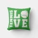 Coussin de tennis LOVE vert. Les joueurs de tennis adoreront ce coussin de tennis confortable ! Ce coussin de tennis a un thème d'amour avec les mots TENNIS et LOVE en lettres blanches grasses. Une balle de tennis sert de lettre O, donnant à ce design un véritable thème de tennis. Au dos de ce coussin se trouve le même design Tennis Love, mais imprimé sous forme de superbe motif imprimé sur toute la surface. Ce coussin confortable a fière allure sur n'importe quelle chaise et montrera à tout le monde que vous avez un amour ardent pour le tennis. Plus de cadeaux et de marchandises sur le thème du tennis disponibles dans la boutique STAND UP AND CHEER !