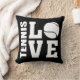 Coussin de tennis Black TENNIS LOVE. Les joueurs de tennis aimeront ce coussin de tennis confortable! Ce coussin de Tennis a un thème Amour avec les mots TENNIS et AMOUR en lettres blanches en gras. Un ballon de tennis sert à la lettre O donnant à ce design un vrai thème de tennis. Sur le dos de ce coussin est le même Tennis Love design mais imprimé comme un fantastique tout sur papier à motifs. Ce coussin confortable est très bien placé sur n'importe quelle chaise et montrera à tous ceux que vous avez un amour ardent pour le tennis. Plus de plaisir Les cadeaux et les marchandises thématiques de Tennis disponibles dans le magasin STAND UP AND CHEER!