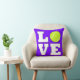 Tennis Love Cute Carré Jetez l'oreiller : Le mot "LOVE" épelé en lettres carrées blanches en gras avec une balle de tennis à la place du O. Fait une belle décoration pour les joueurs de tennis, les entraîneurs et les fans! Cliquez sur le bouton "Personnaliser" pour changer la couleur de l'arrière - plan, actuellement non violet.