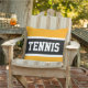 Ce design sportif amusant présente des grandes lettres fortes classiques à l'intérieur d'une large bande noire surlignée avec des rayures blanches sur un arrière - plan jaune vif avec "TENNIS" épelé à l'avant et au centre. Les couleurs et le texte de ce design peuvent être personnalisés.