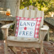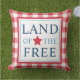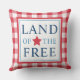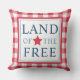 Carré patriotique coussin caractéristiques "Land of the Free" conception de typographie avec accent étoilé et rouge en vichy plaid motif frontière. Couleurs rouge, blanc et bleu marine.