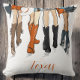 Un coussin avec une illustration de mode imprimé de dames représentant fièrement leur école au Texas, stylée en orange brûlé et gris foncé avec bottes de cowboy et casquettes! Il reflète parfaitement cet esprit du Sud et cette fierté de l'école. Le Texas est en orange sur le fond. Parfait pour les dortoirs, chambres, anniversaires, cadeaux de vacances ou cadeaux de fin d'études.