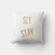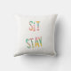 Coussin texte amusant humour s'assoir dans des lettres colorées sur l'arrière - plan blanc pour le style fantaisiste décoration maison.
