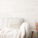 Coussin textile floral blanc et brun
