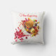 Jetez l'oreiller avec mon travail d'ordinateur d'une cornucopie remplie de citrouilles, de pommes, d'oranges, de cônes de pin, de raisins, de feuilles d'automne de maïs et de rouge. Le texte dit "Thanksgiving".