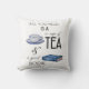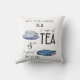 "Tout ce dont vous avez besoin, c'est d'une tasse de thé et d'un bon LIVRE" des mots apparaissent avec un tableau aquarelle d'une tasse de thé et un livre en bleu et blanc pour faire cette lecture cosy d'oreiller à lancer à thème.